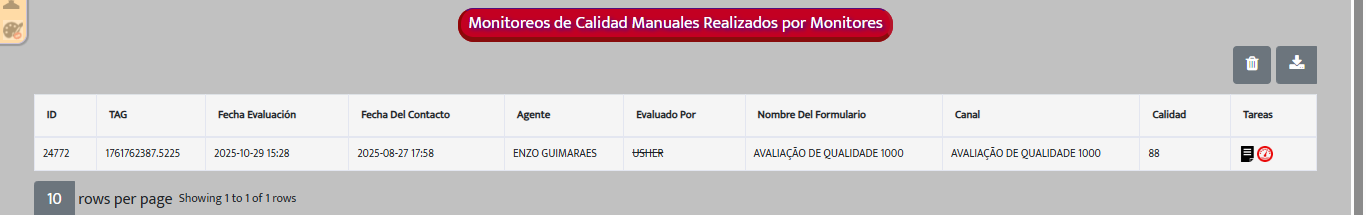 Después de realizar el monitoreo con la ayuda de la IA de CYF y procesarlo, el contacto desaparecerá de los pendientes de evaluar y aparecerá en la misma pestaña, pero en “Monitoreos de calidad manuales realizados por monitores”.