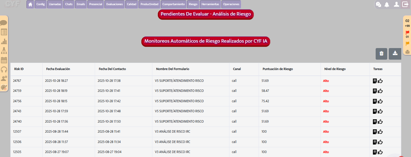 El Monitoreo de Riesgo tiene como objetivo identificar atendimientos que presentan potencial de impacto negativo para la operación, el cliente o la imagen de la empresa.